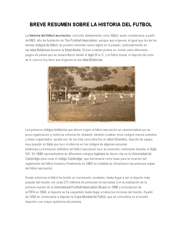 Breve Resumen Sobre La Historia Del Futbol | Asociación de ... 😈
