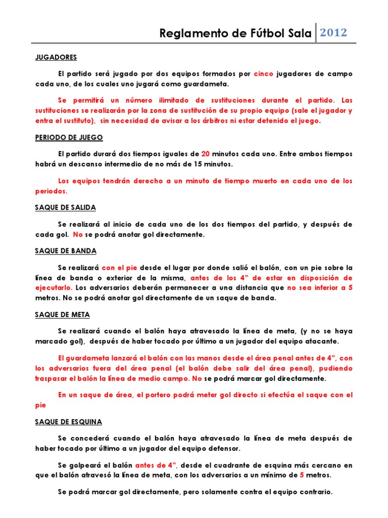 RESUMEN REGLAMENTO FÚTBOL SALA pdf 😈