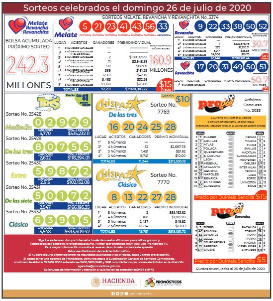 RESULTADOS DE HOY: MELATE 3375, PROGOL 2032, CHISPAZO 7775 ... 😈