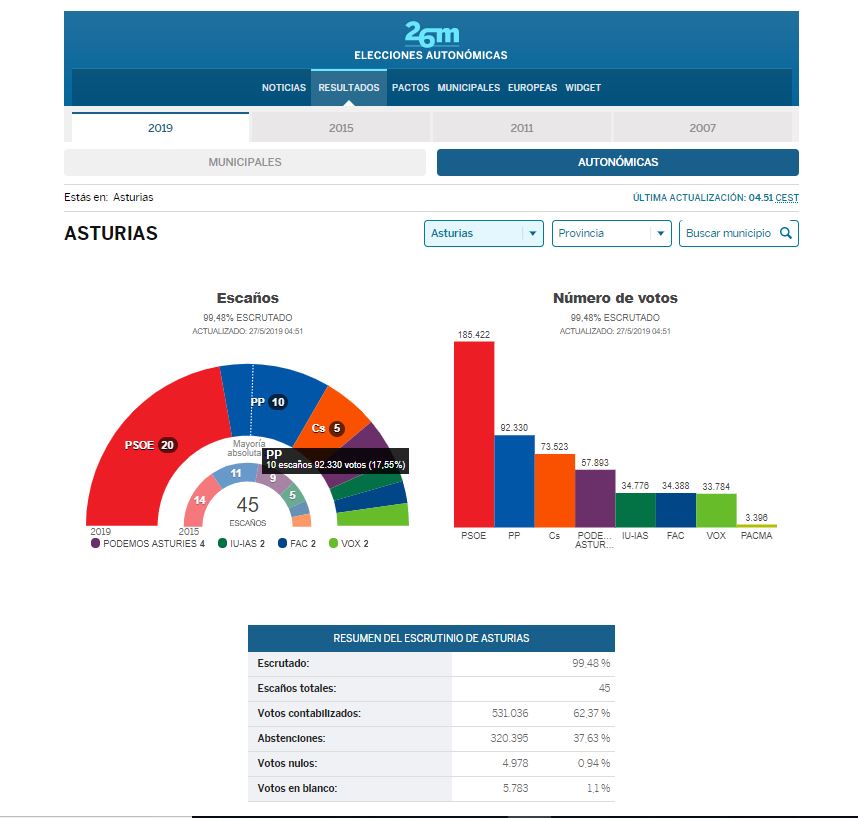 Resultado de las elecciones generales 2019 en Asturias 😈