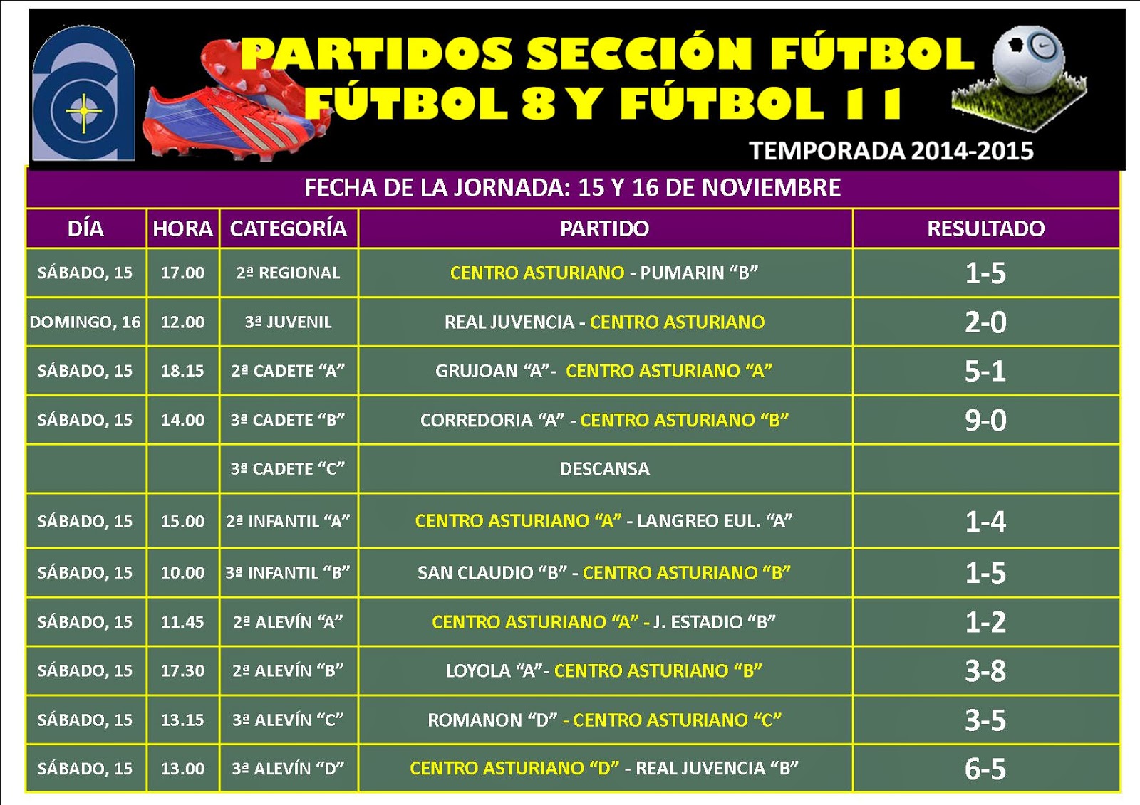 CENTRO ASTURIANO DE OVIEDO: RESULTADOS JORNADA 15 Y 16 DE NOVIEMBRE 😈