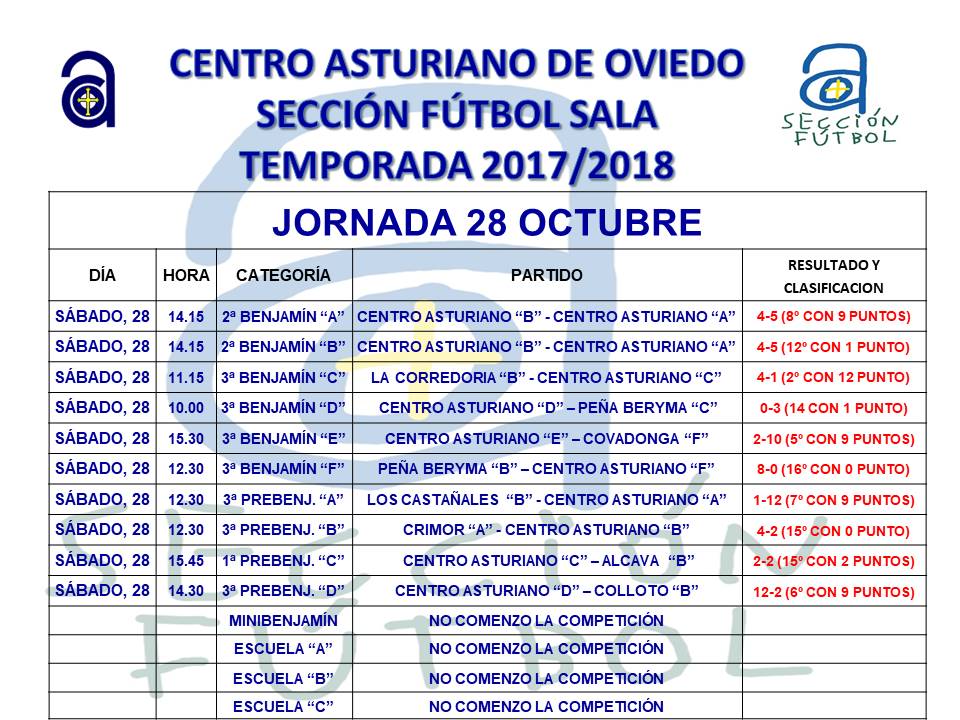 CENTRO ASTURIANO DE OVIEDO: RESULTADOS JORNADA 28 Y 29 DE OCTUBRE 😈