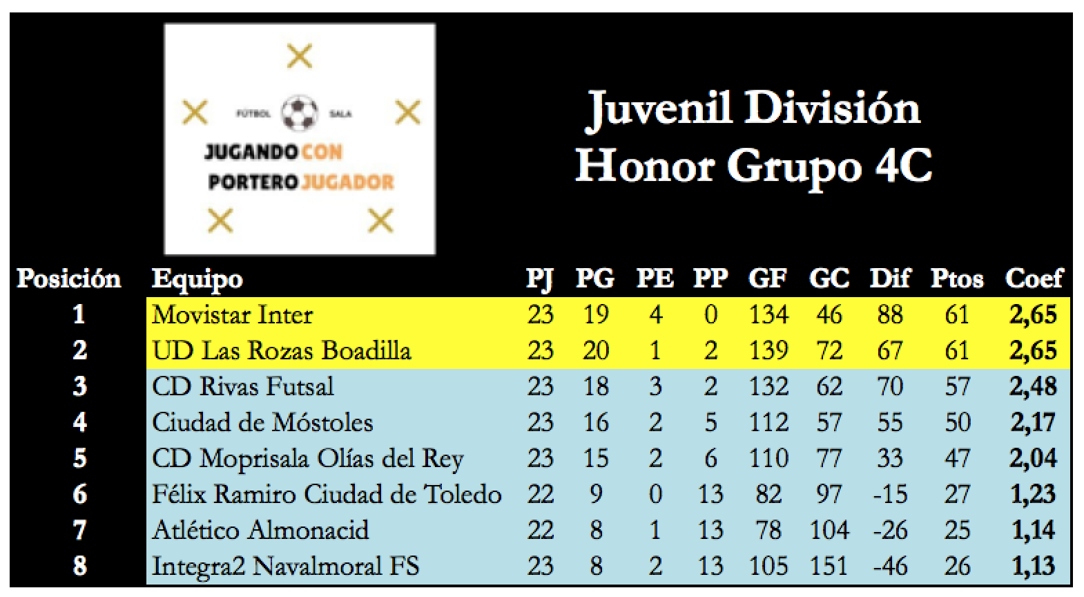 Burgos Deportivo: CLASIFICACIÓN DIVISIÓN DE HONOR JUVENIL FÚTBOL SALA 😈