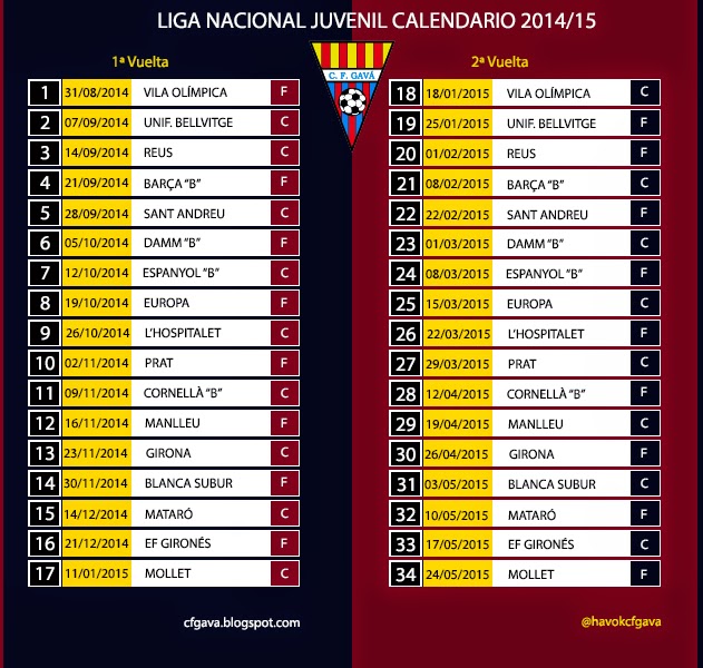 CF Gavà: Calendario Liga Nacional Juvenil 😈