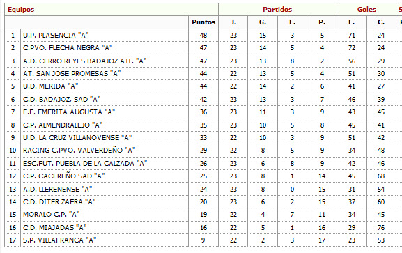 FUTBOL CADETE. BADAJOZ: CLASIFICACION Y RESULTADOS LIGA NACIONAL JUVENIL. 😈