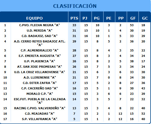 FUTBOL CADETE. BADAJOZ: CLASIFICACIONES 13 ENERO. 😈