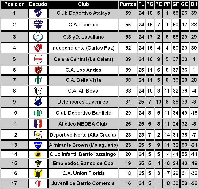 El Deportivo VM: Tabla de Posiciones Primera División A Liga Mercedina ... 😈