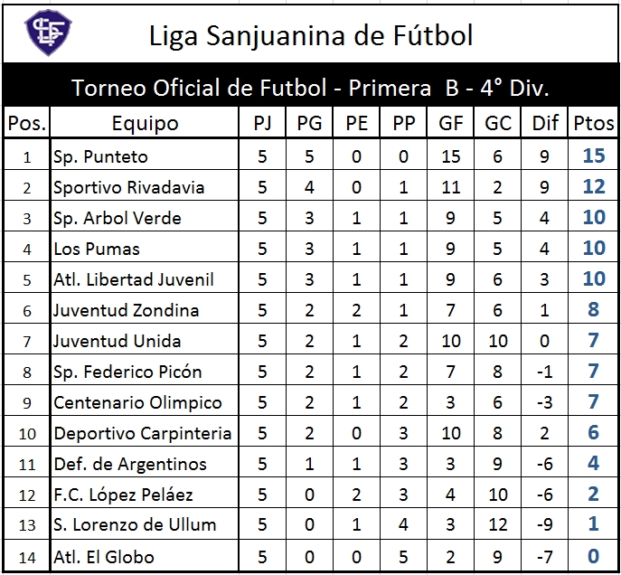 Liga Sanjuanina de Futbol | Sitio Oficial: Primera B 4° División ... 😈