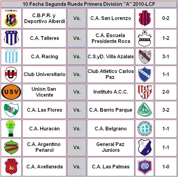 Estadios Cordobeses: Resultados 10ª Fecha Primera División A LCF 😈