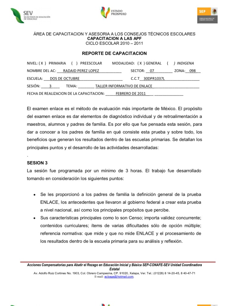 SESION 3. CAPACITACION A LAS APF CICLO ESCOLAR 2010 – 2011. ESCUELA ... 😈