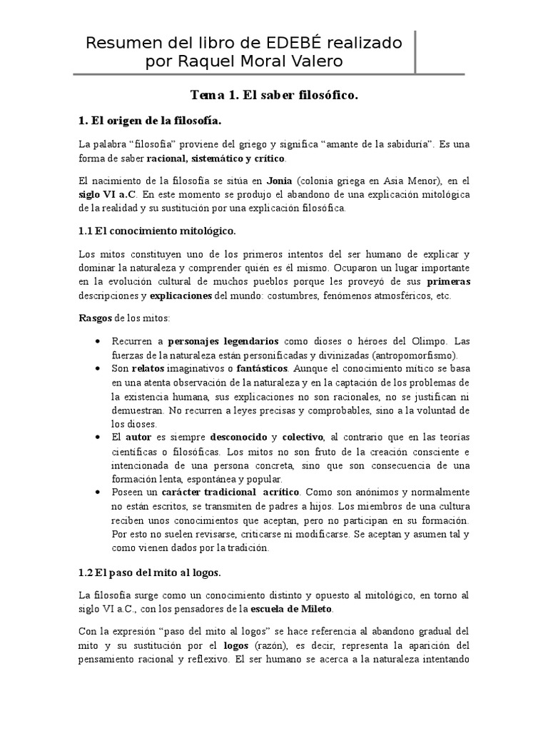 A TEMA 1 EL Saber Filosófico Filosofía Bachillerato ... 😈