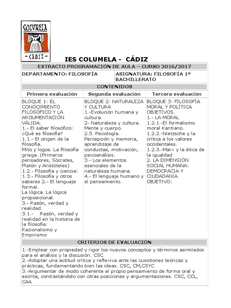 Resumen Programacion FILOSOFIA 1 Bachillerato 1 | Prueba ... 😈