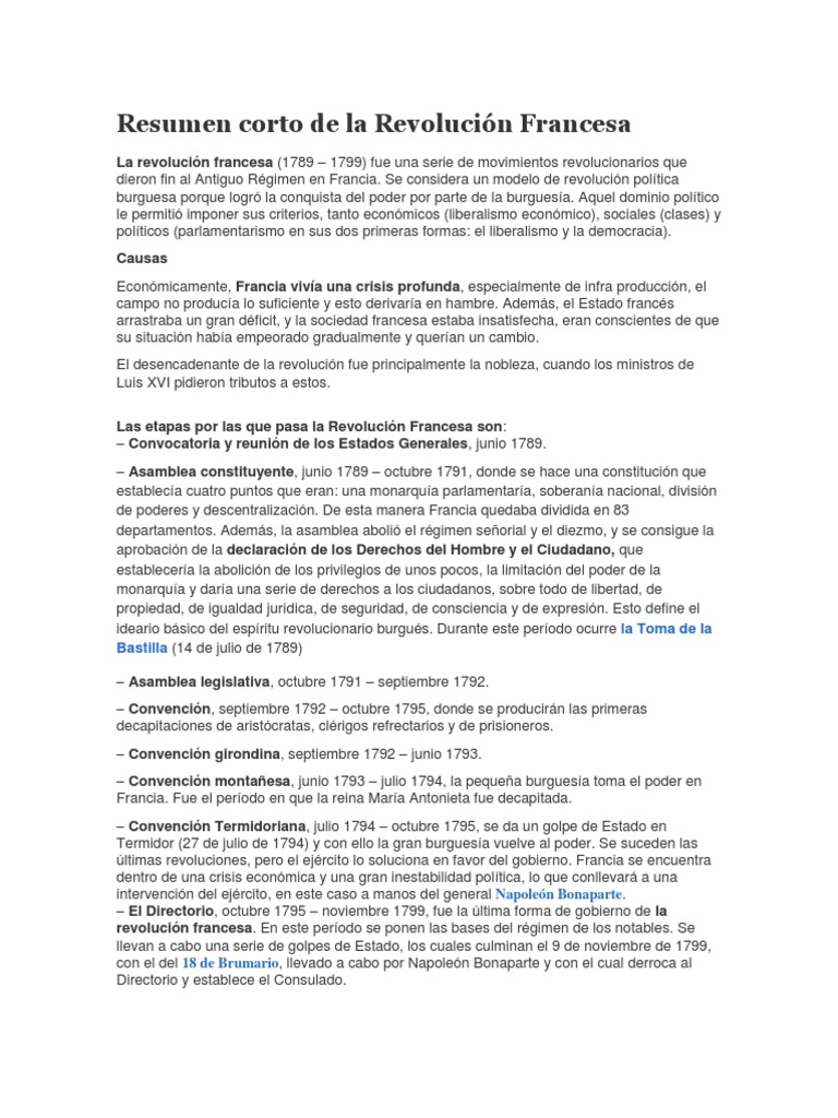 Resumen Corto de La Revolución Francesa | revolución ... 😈