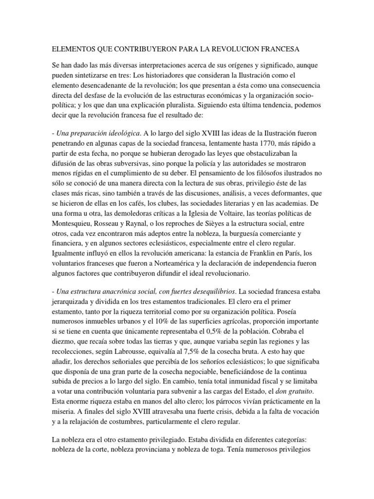 Elementos Que Contribuyeron Para La Revolucion Francesa 😈