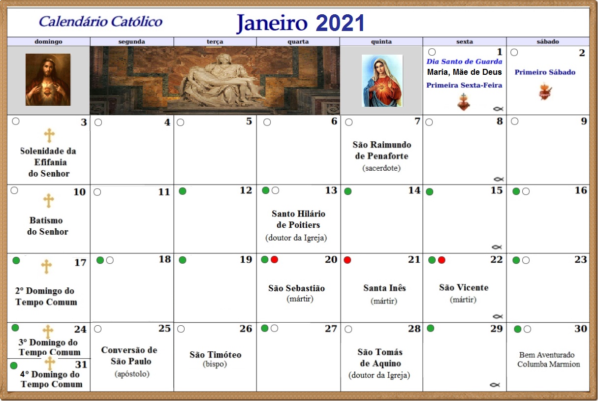 SENDARIUM: CALENDÁRIO CATÓLICO JANEIRO DE 2021 😈