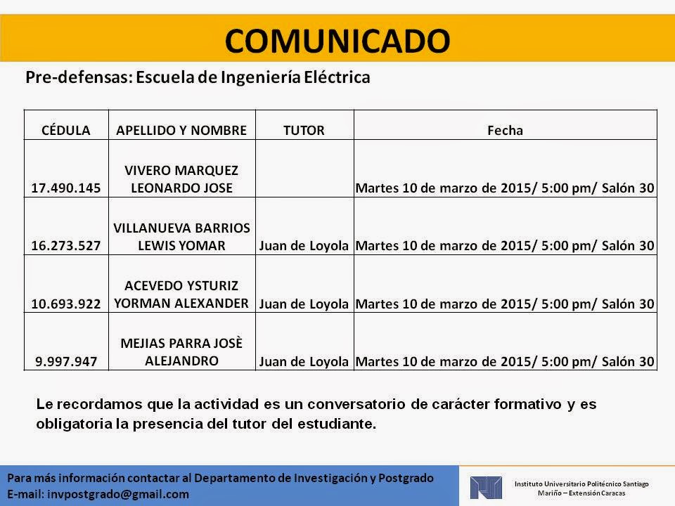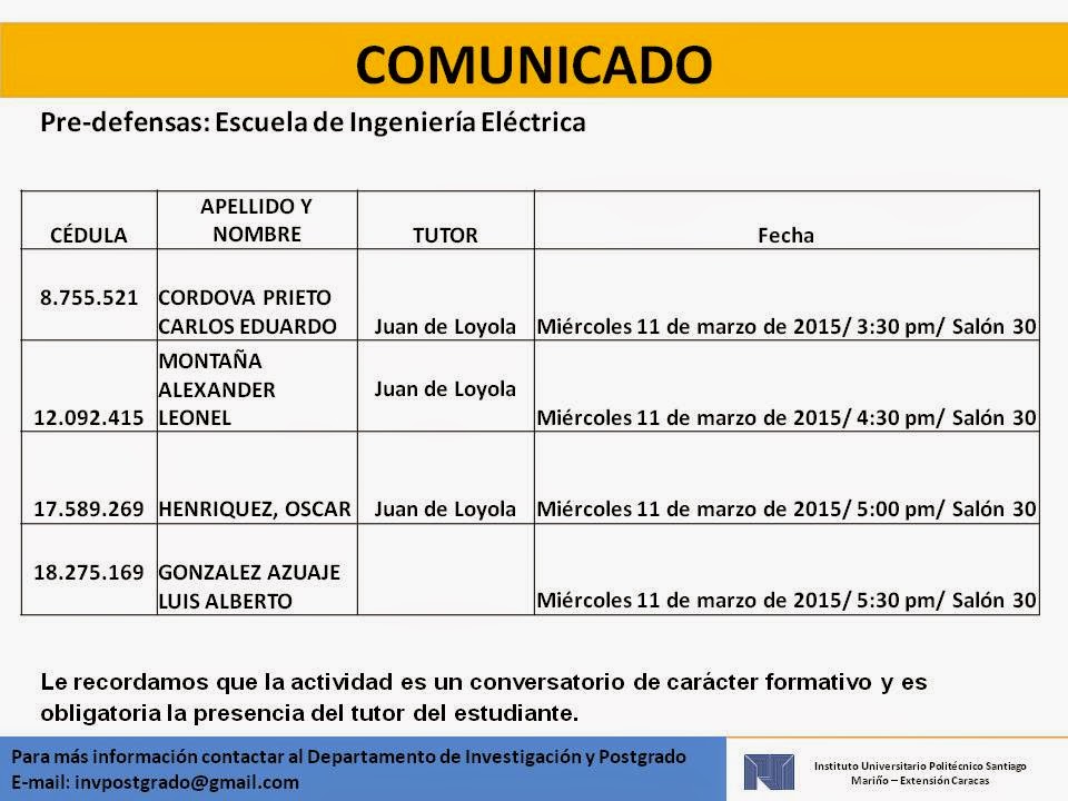 Dpto. Investigación y Postgrado PSM Caracas: Pre defensas ... 😈