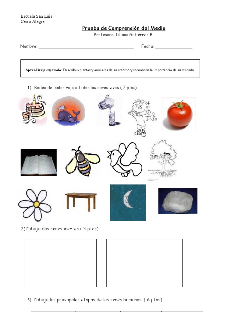 Ciencias prueba primer año | actividades para primaria ... 😈