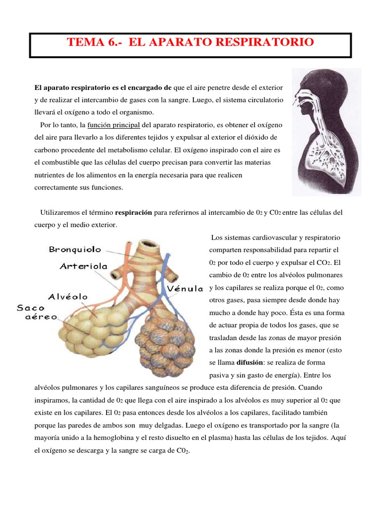 TEMA 6. SISTEMA RESPIRATORIO.pdf | Pulm贸n | Sistema respiratorio 馃槇
