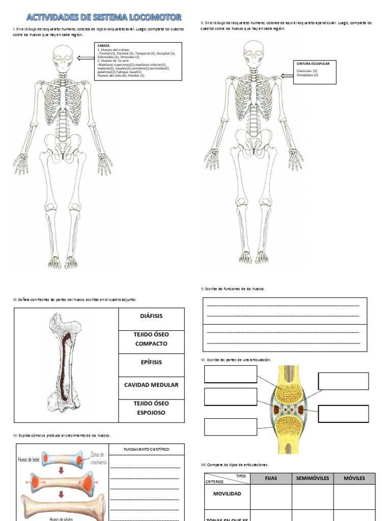 Actividades de Sistema Oseo | Articulación | Hueso | Prueba gratuita de ... 😈