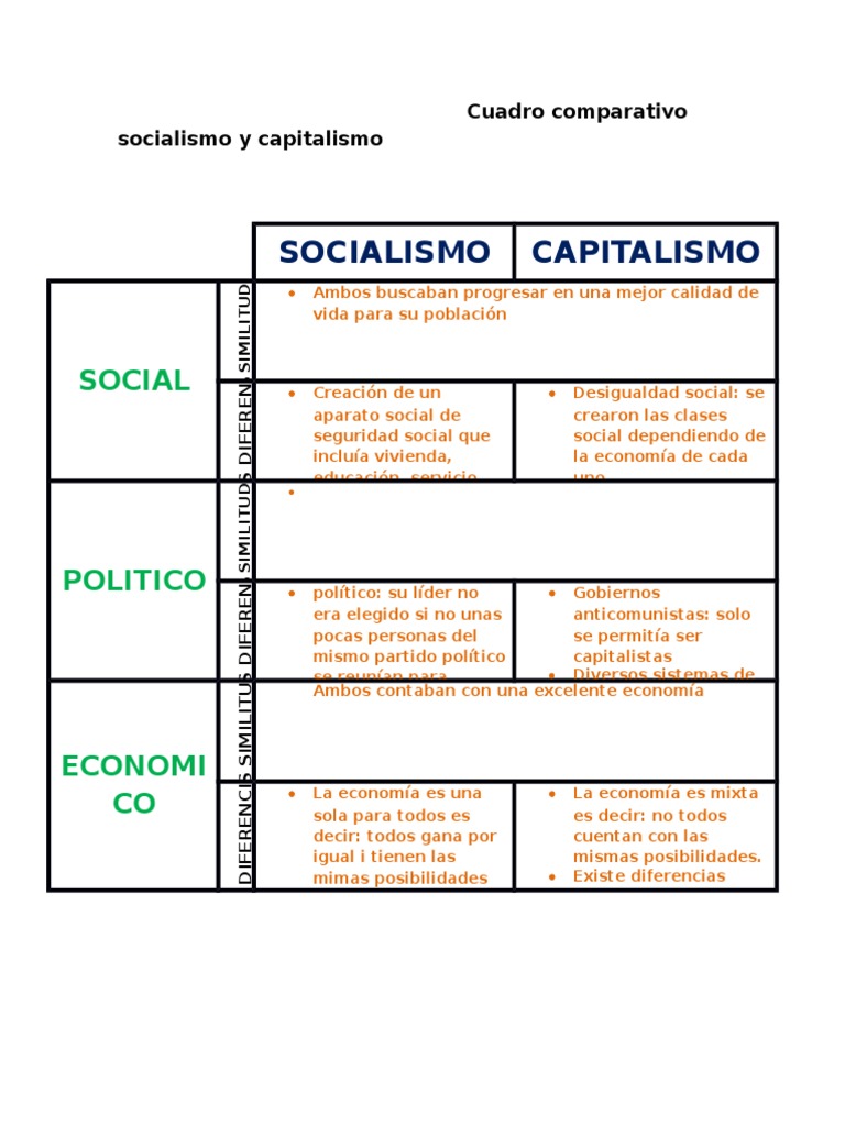Cuadro Comparativo Socialismo y Capitalismo 1 | Capitalismo | Socialismo 😈