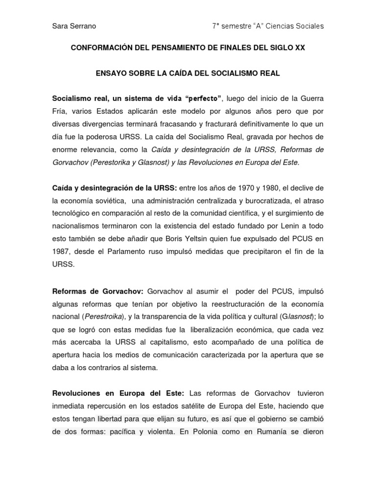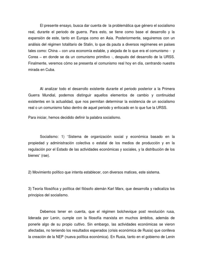 Ensayo Socialismo Real | Comunismo | Socialismo 😈