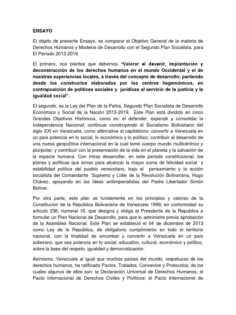 Ensayo Plan Socialista y Objetivo General | Venezuela | Socialismo 😈