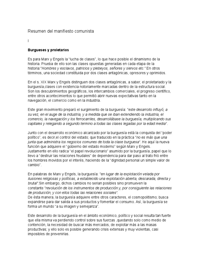 Ensayo Manifiesto Comunista | Comunismo | El Manifiesto Comunista ... 😈