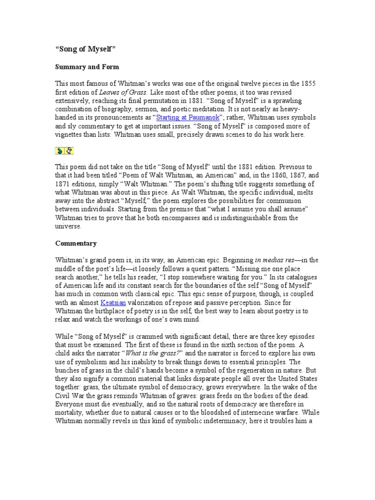 Song of myself analysis. Whitman Song of Myself Essay ... ๐