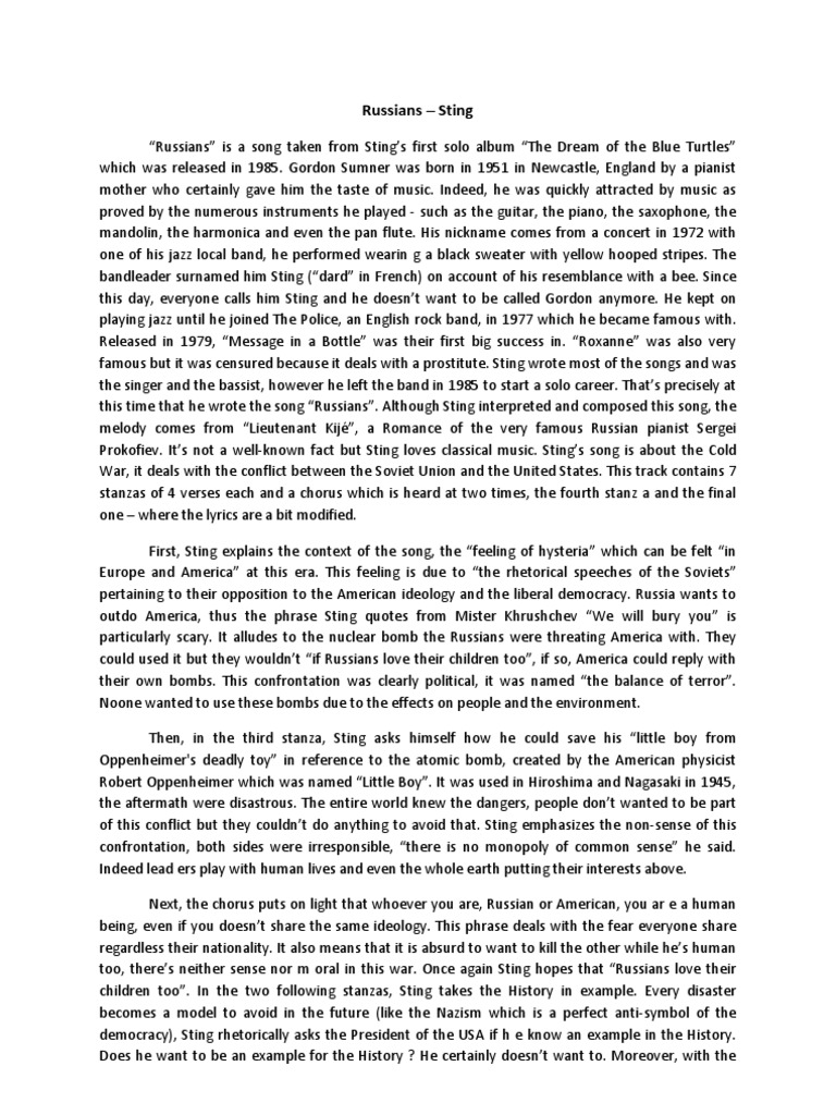 Sting Russians Song Analysis | Entertainment General ... ๐