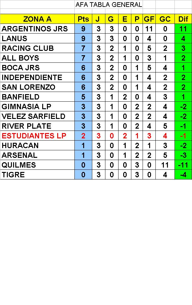 Estudiantes de La Plata futbol infantil: tabla general afa zona ... 😈