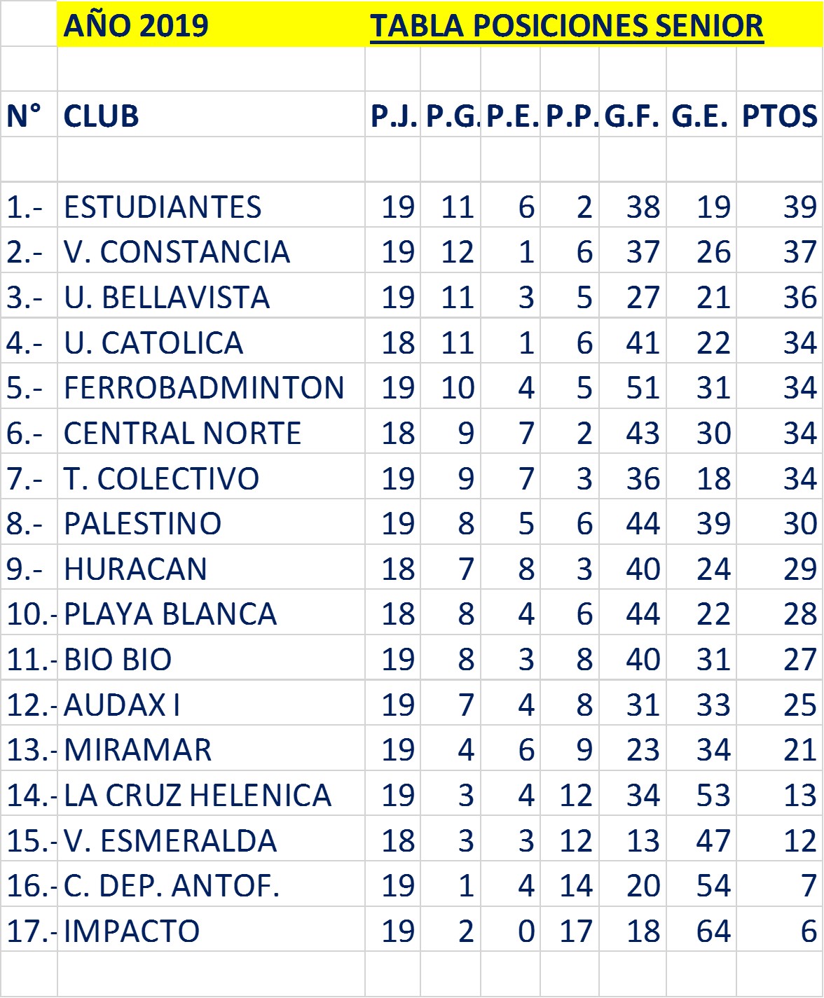 + AFA ANTOFAGASTA: TABLA DE POSICIONES AFA DIVISIÓN ADULTO 😈