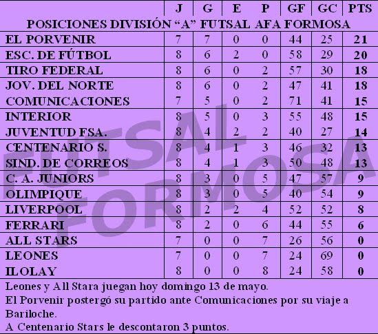 POSICIONES DIVISIÓN A AFA FUTSAL 😈