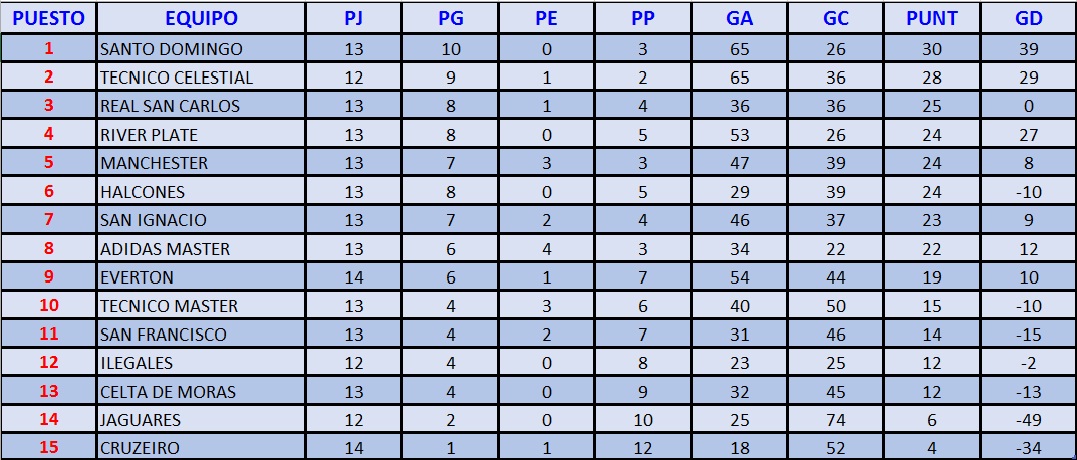 LIGA DEPORTIVA BARRIAL CASHAPAMBA: TABLA DE POSICIONES 😈