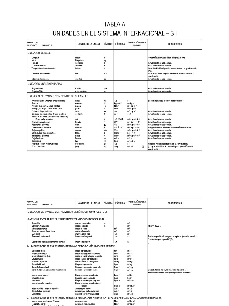Tabla Sistema Internacional de Unidades 😈