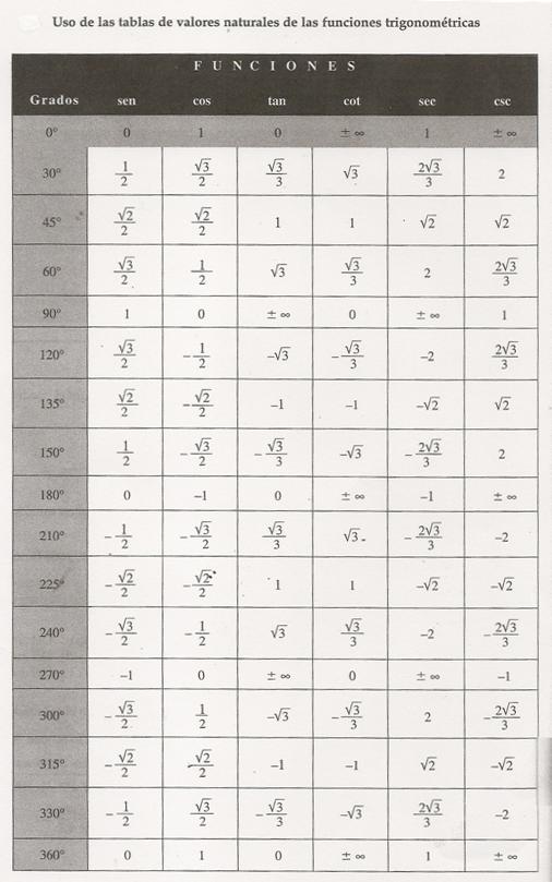Tablas de Funciones Trigonometricas Naturales | Funciones ... 😈