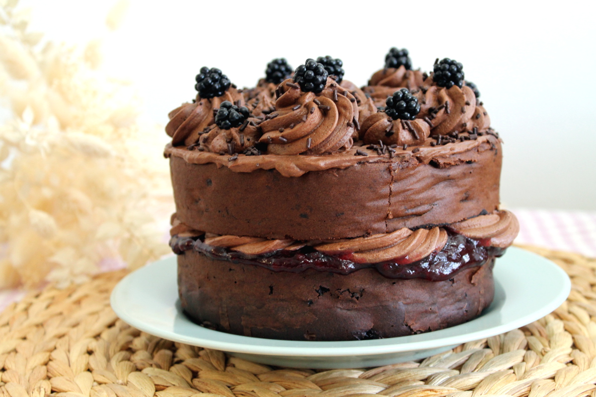 Tarta de chocolate y moras, proteica y sin azúcar ... 😈