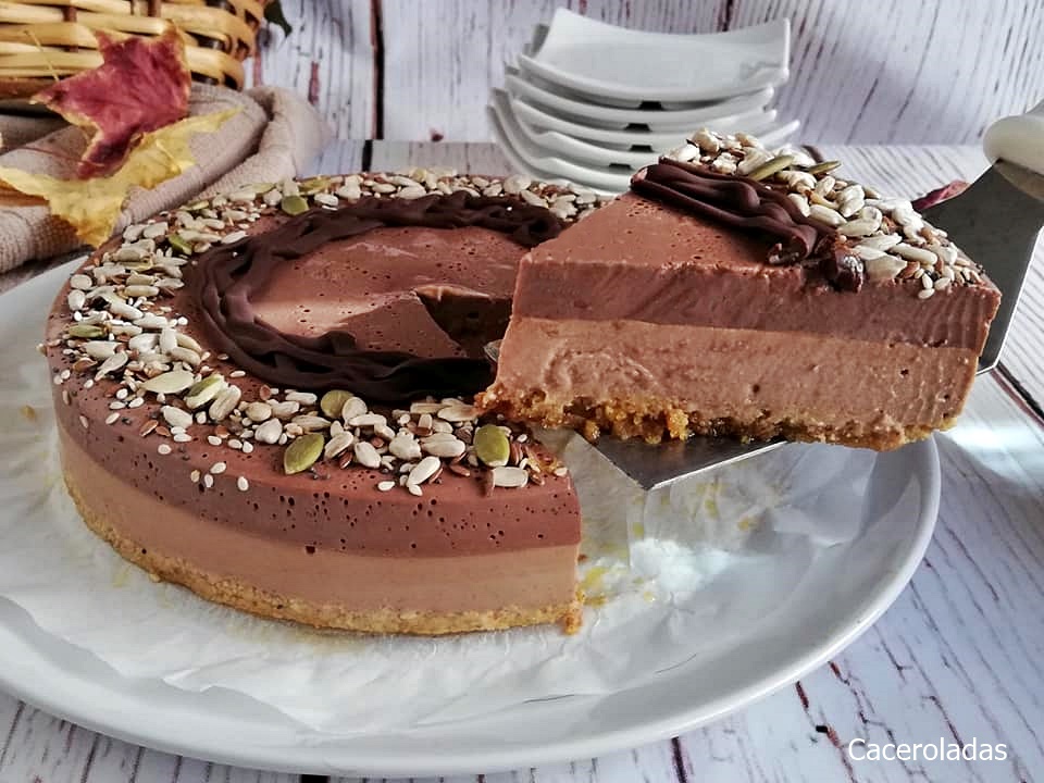 Tarta de queso, chocolate y café sin horno Receta de ... 😈