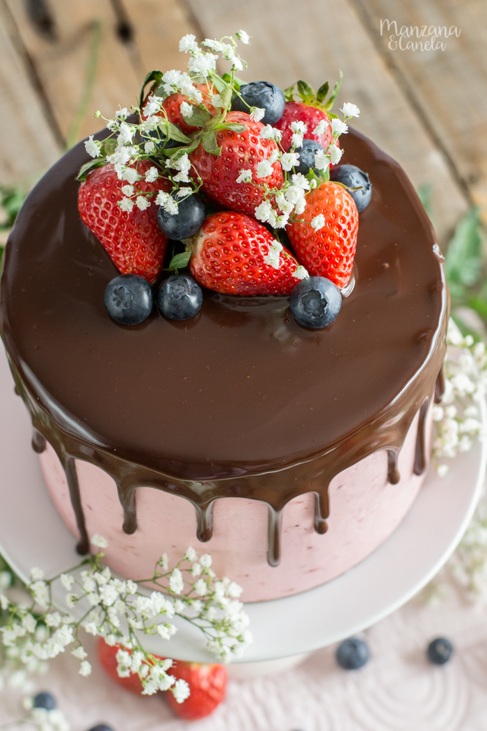 Tarta de chocolate y fresas {con frosting de nata y queso ... 😈