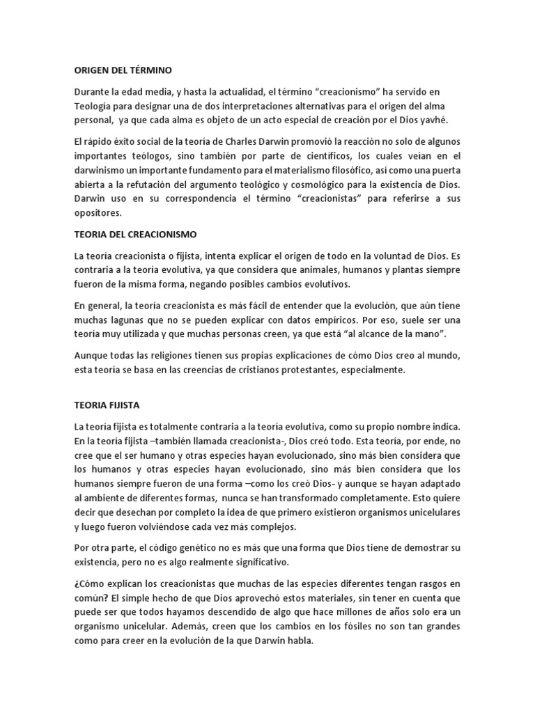 Biología Teoria Del Creacionismo | Creacionismo | Evolución 😈