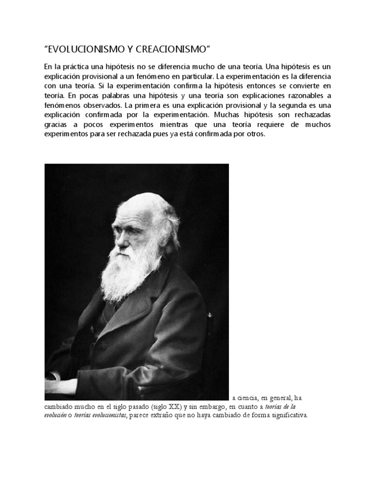 EVOLUCIONISMO La teoría evolucionista nos trata de dar a ... 😈