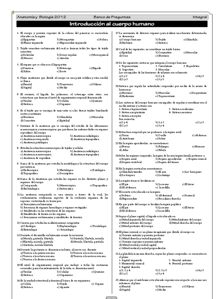 BANCO DE PREGUNTAS ANATOMIA Y BIOLOGIA 😈