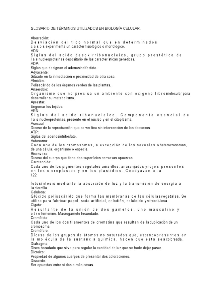 GLOSARIO DE TÉRMINOS UTILIZADOS EN BIOLOGÍA CELULAR 😈