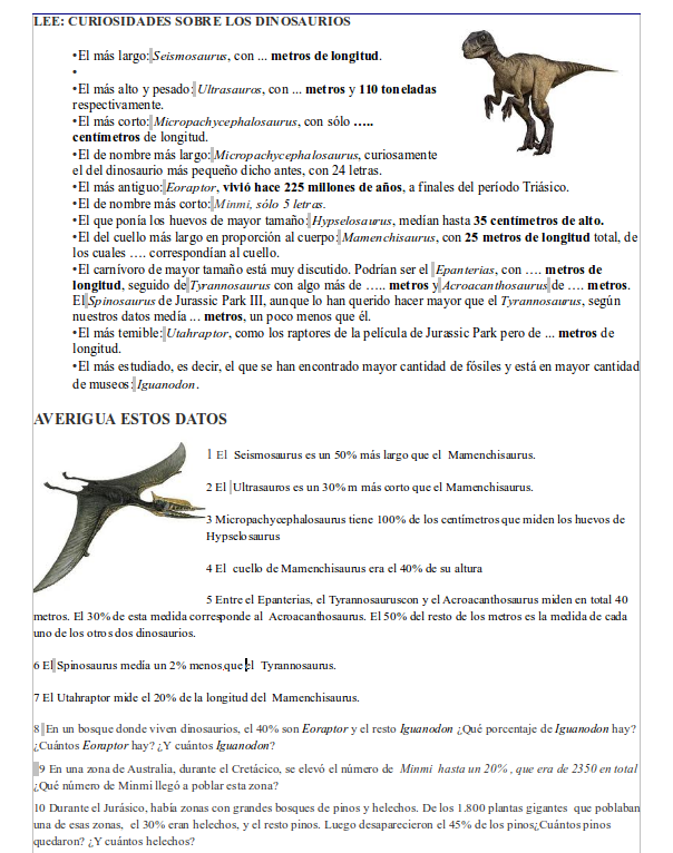 Ejercicio de Texto informativo Los dinosaurios 😈
