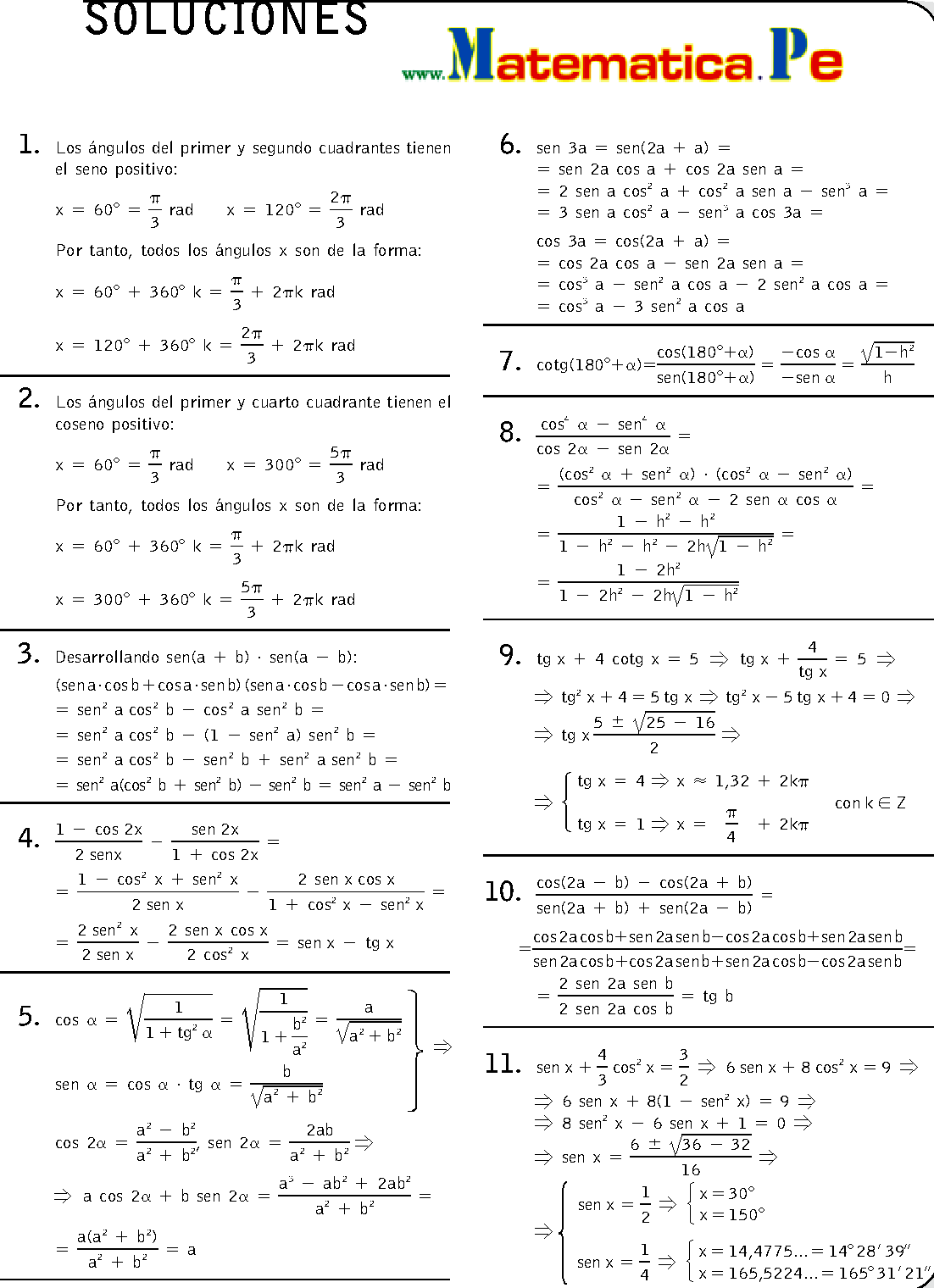 Fórmulas trigonométricas | Ecuaciones, Fichas de ... 😈