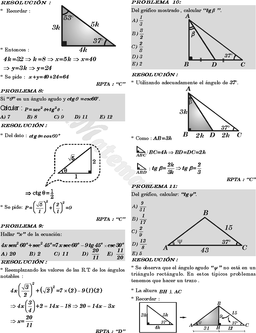 RAZONES TRIGONOMETRICAS DE ANGULOS NOTABLES PROBLEMAS ... 😈