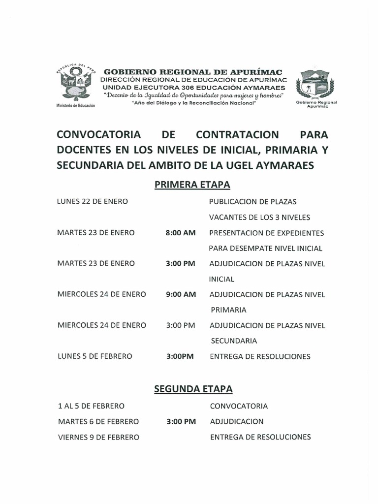 Ugel Aymaraes Cronograma Contratacion Docente 2018 Rm 539 2017 Minedu 😈