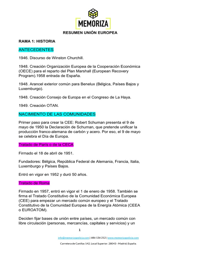 Antecedentes: Resumen Uni贸n Europea Rama 1: Historia ... 馃槇