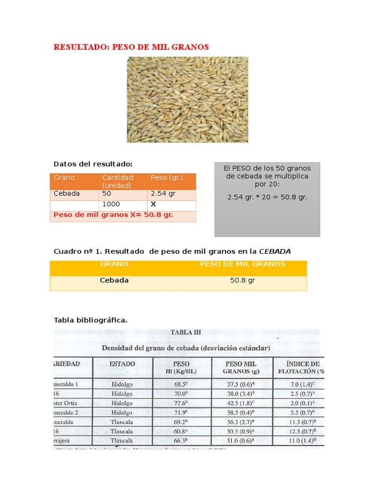 RESULTADO Peso de Mil Granos CEBADA | Cebada | Naturaleza 😈
