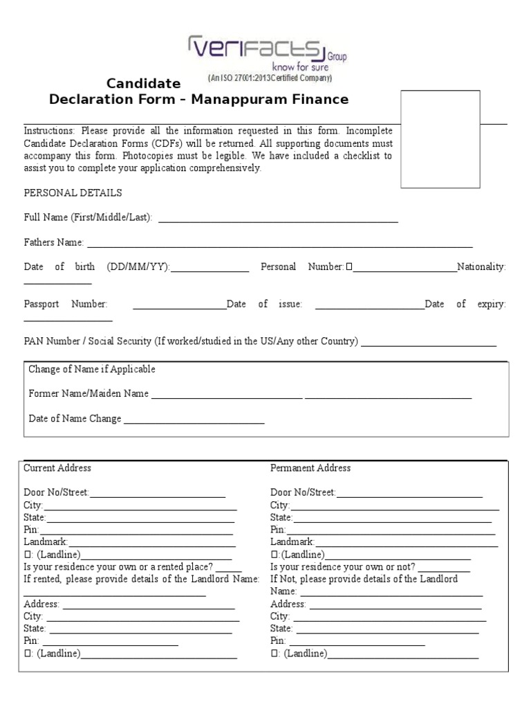Candidate Declaration Form CDF for Manappuram Finance ... 😈