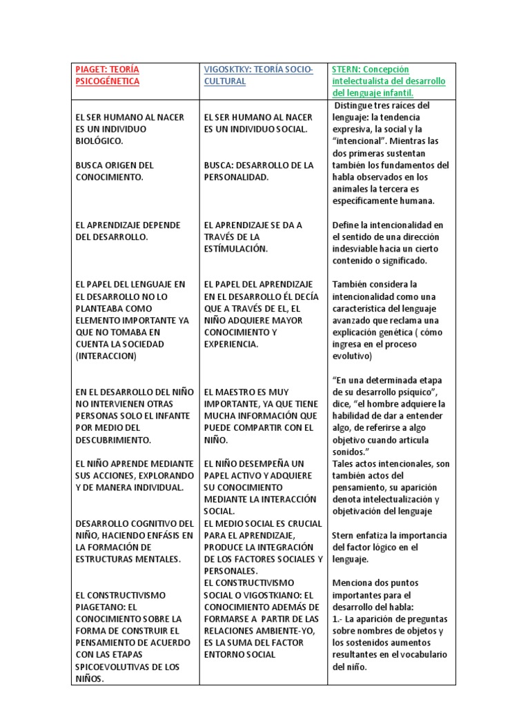 Cuadro Comparativo, Piaget, Vigostky y Stern 😈